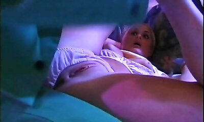 Filthy daddy is stagging on sexy young babysitter jilling off puss in the living room