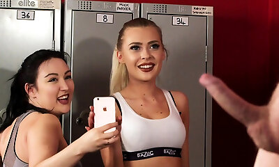 CFNM babes sucking on knob