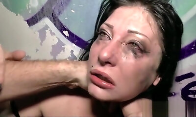 una troia goth si appoggia contro un muro e viene strappata da dietro