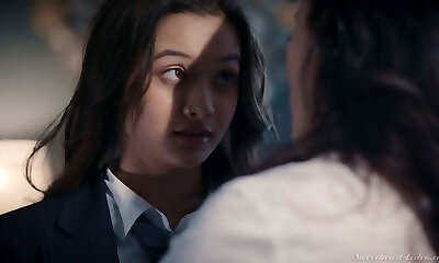 Hot like fire sexy office lesbian Alex De La Flor lures charming babe for sex