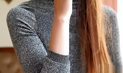 Amateur girl in stockings is romping on sofa and table (with condom)