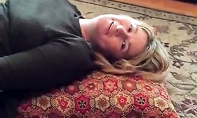 Buxomy blonde wife loves playing with her tits during fucking
