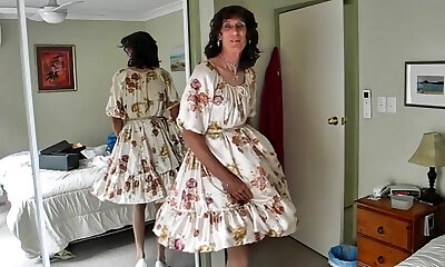 Crossdresser michelle playing in floral frock