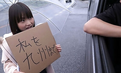 Japanese schoolgirl, Mikoto Mochida is sucking a stranger's