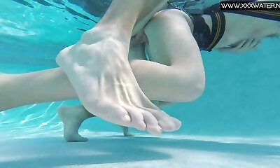 Perfectly shaped swimmer Lola is unwrapping under the water