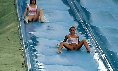 Big-titted amateur lesbians in the swimming pool