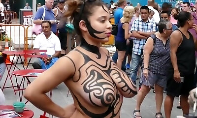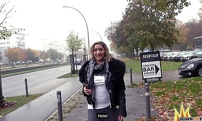 Captivating brown-haired Shazia flashes her amazing body in the street