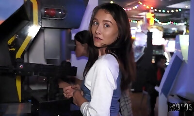 Chesty platinum-blonde teenager Stella Cox Hitch Hike with a stranger from not catching on the bus on the street