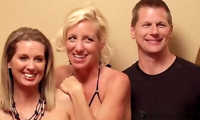 Suntanned donk swinger blonde gets a mask on for anonymous MMF