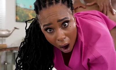 Horn-rampant plump nurse works on her naughty patient's uncircumcised cock