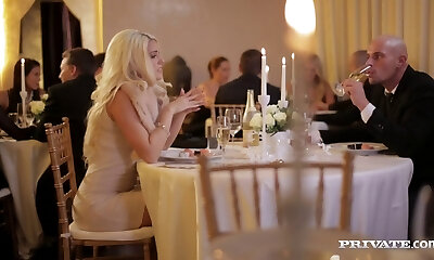 诱人的白金金发女郎安吉丽娜邦尼特正在享受与她火热的热血花花公子