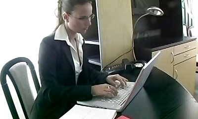 超淫的山药大小的jugged书呆子黑发的助理卡特里娜飓风玉轨啄木鸟好