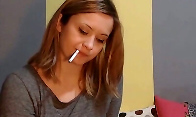 这个网络摄像头的仙女喜欢吸烟,她总是在一个活泼的心情